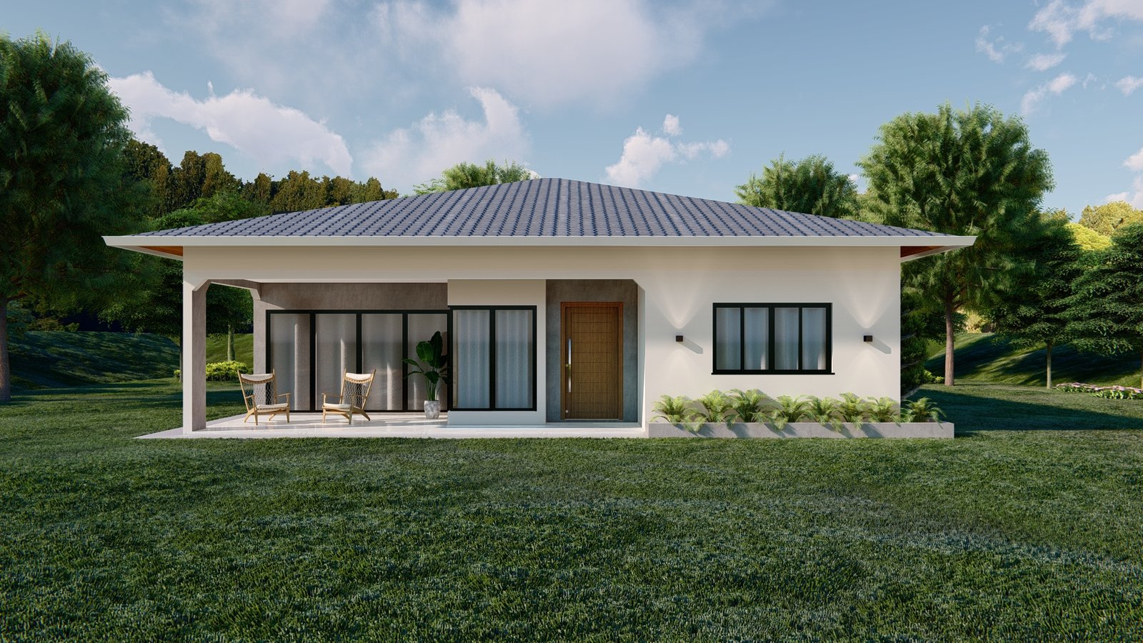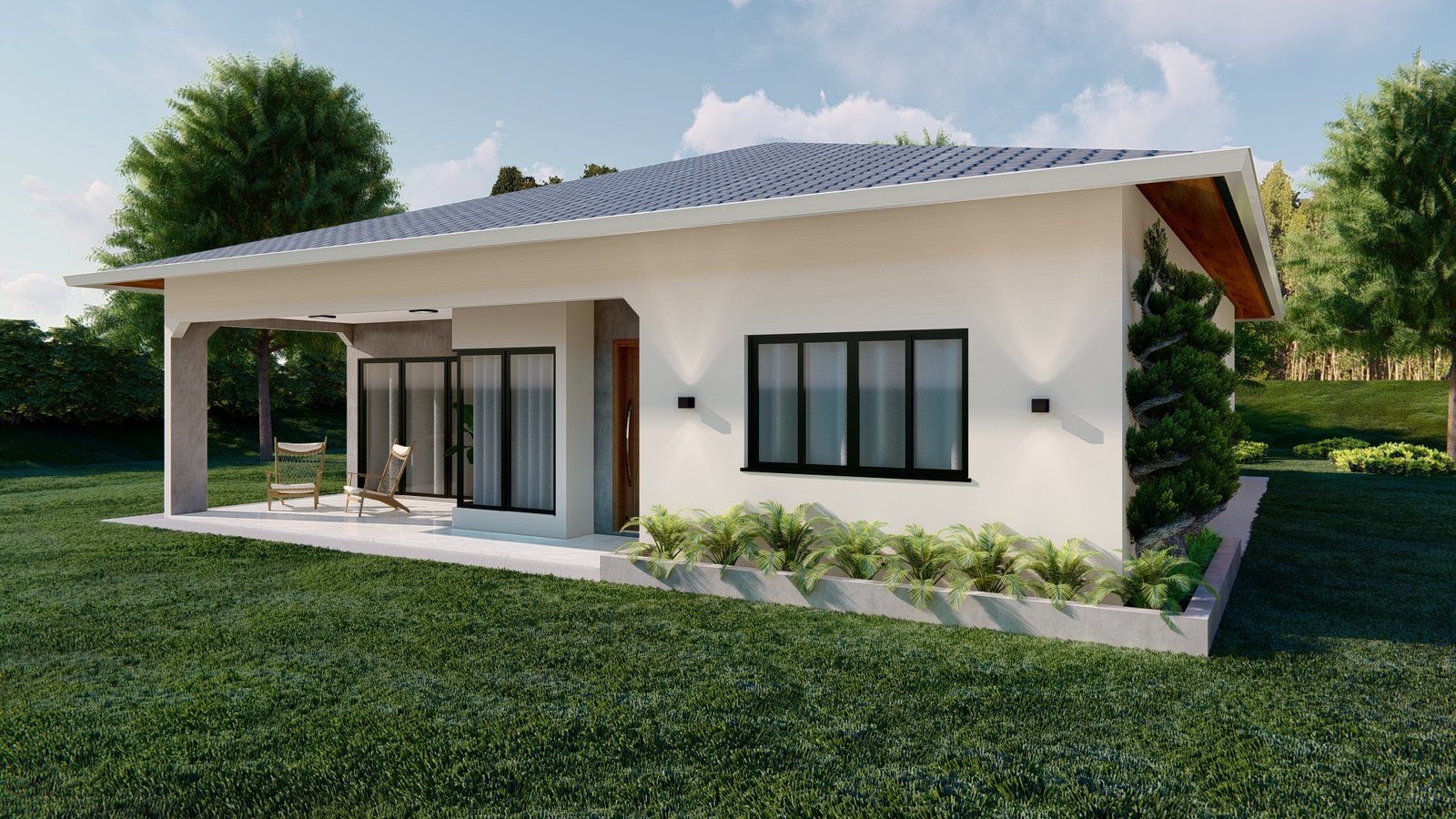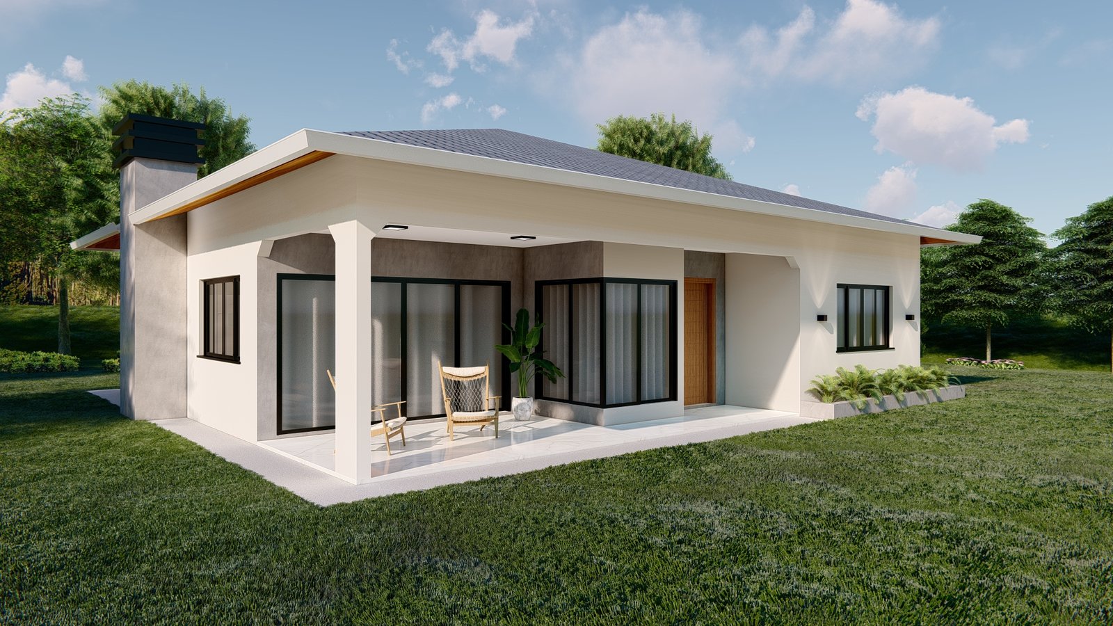 Combinação de charme e modernidade em um único projeto! Com telhado estilo bangalô, fachada sóbria e varanda aconchegante, perfeita para quem busca conforto e contato com a natureza. Um lar elegante, funcional e acolhedor, pronto para receber bons momentos em família. 🌿☀️
